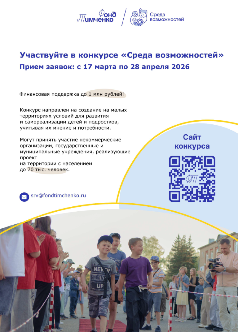 Конкурс «Среда возможностей» направлен на поддержку организаций, которые создают условия для развития и самореализации детей и подростков на малых территориях, внедряют новые практики и услуги в работе с детьми, учитывая их потребности, интересы и идеи, вовлекают в совместную деятельность.