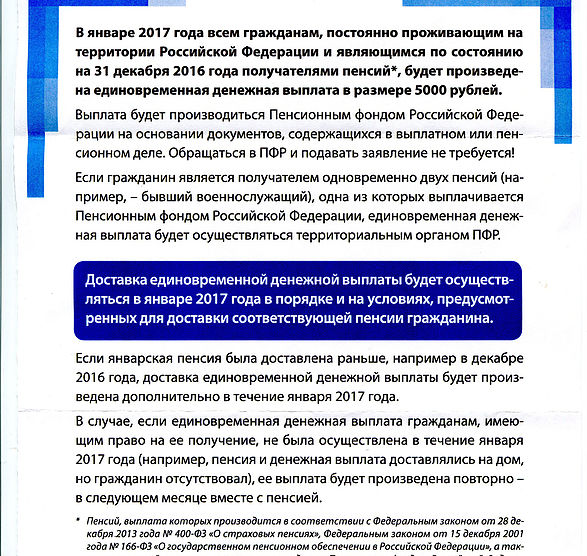 ЕДВ в январе 2017