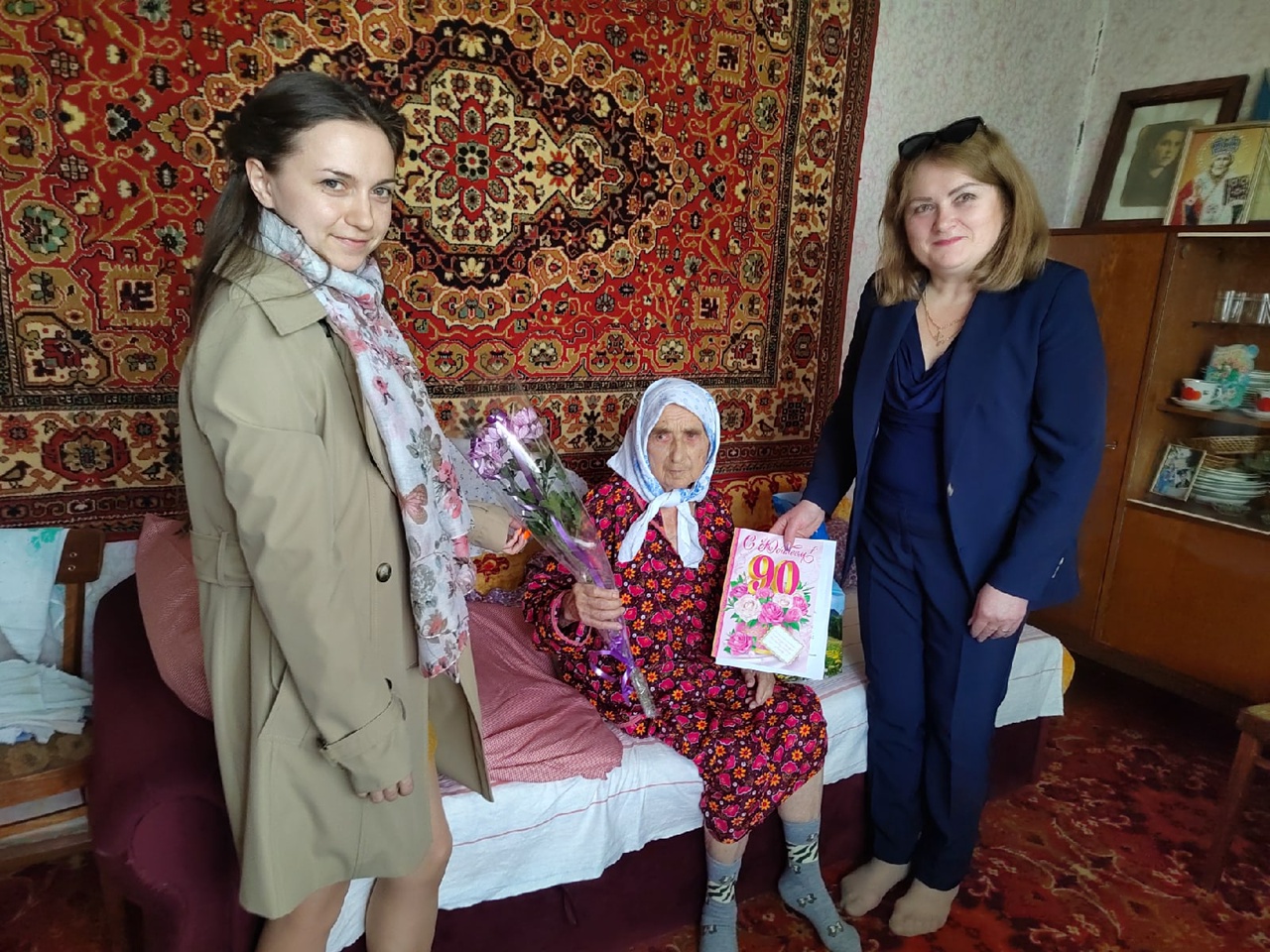 Поздравление президента Российской Федерации, памятные подарки от Областного бюджетного учреждения социального обслуживания «Комплексный центр социального обслуживания населения Курчатовского района и города Курчатова Курской области», вручили директор ОБУСО «КЦСОН Курчатовского района и города Курчатова» Акулова Е.Н., заведующая отделением Польская Я.В., социальный работник Кудрявцева Г. В.