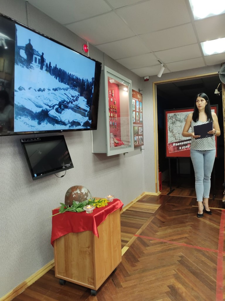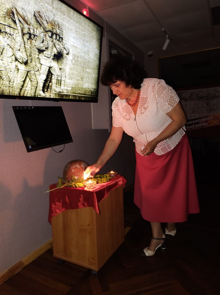В целях реализации проекта «Курское долголетие», в рамках соглашения между ОБУСО «КЦСОН Курчатовского района и города Курчатова» и Курчатовским краеведческим музеем, 22.06.2022 года граждане пожилого возраста и инвалиды города Курчатова и Курчатовского района посетили музей и познакомились с его экспозицией, посвященной Великой Отечественной войне. Сотрудник музея, Нарбекова Татьяна Петровна, рассказала о первых днях войны, привела статистику убитых, умерших и пропавших без вести советских гражданах. Фотографии, документы и экспонаты размещенные в музее, дают представление о событиях тех грозных дней.