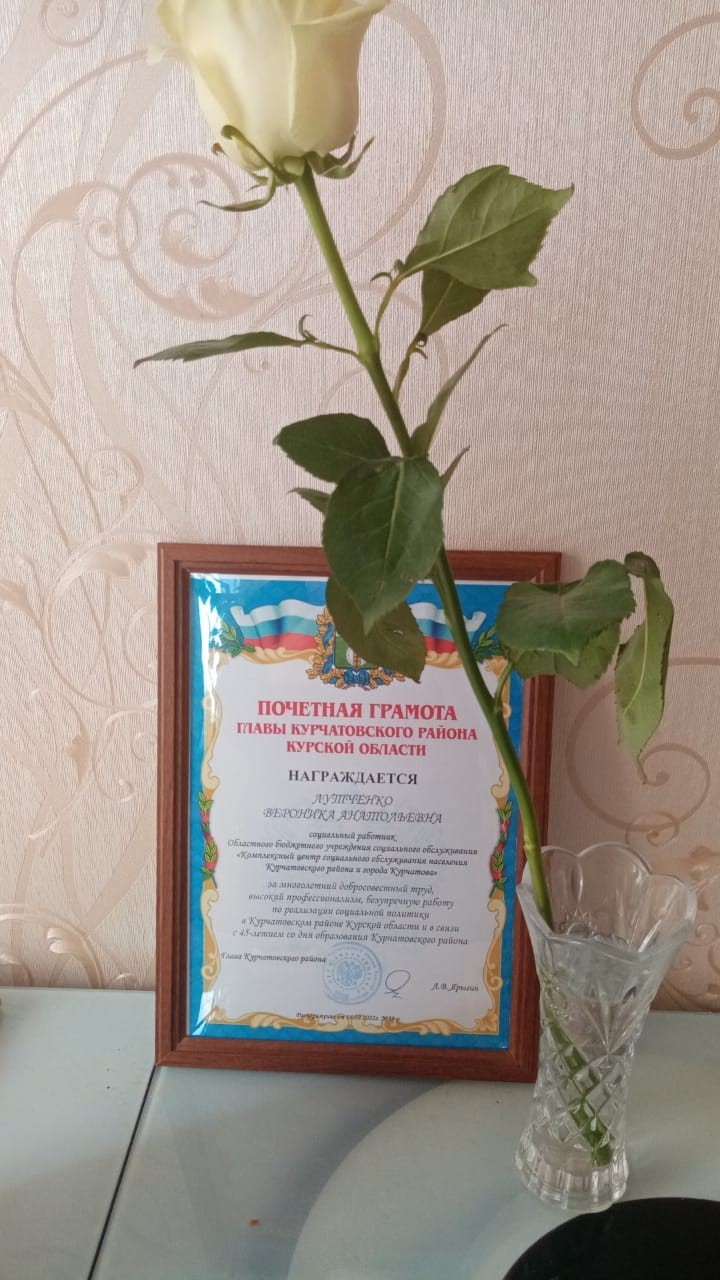 В финале официальной части Глава Курчатовского района, Ярыгин Александр Васильевич, вручил благодарственные письма и почетные грамоты лучшим работникам района. Почетными грамотами были награждены социальные работники ОБУСО «КЦСОН Курчатовского района и города Курчатова» - Орлова Ольга Вячеславовна и Лутченко Вероника Анатольевна.