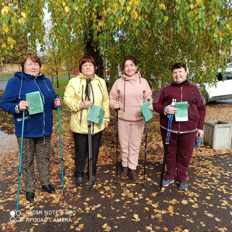 Лилия Борисовна рассказала о том, что регулярные занятия спортом ведут к сохранению здоровья и снижения рисков развития сердечно-сосудистых заболеваний, особенно артериальной гипертонии, помогает восстановиться после травм и операций опорно-двигательного аппарата. Затем все желающие приняли участие в разминке и совершили небольшую прогулку с палками.