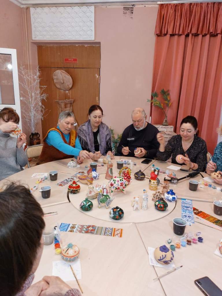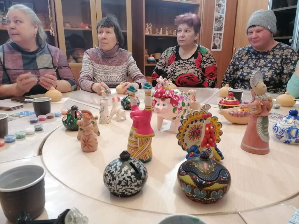 3 марта, участники клуба «Активное долголетие» организованного в ОБУСО «КЦСОН Курчатовского района и города Курчатова» для людей старшего возраста, совершили поездку в МАУК «Центр народных традиционных промыслов» Курчатовского района Курской области. Участники клуба познакомились с историей возникновения традиционных промыслов кожлянской игрушки и дроняевской глиняной посуды. Маслова Татьяна Александровна провела экскурсию в музее, интересно было узнать о том, как добывали глину, подготавливали ее к работе. В музее рассматривали экспонаты – удивительные работы мастеров не только нашей традиционной дроняевской игрушки, но дымковской, воронежской, и др. Но самым запоминающимся было участие в мастер-классе: раскрашивание глиняной копилки. С большим вдохновением, увлечением, интересом мы разрисовывали свои поделки. В планах приехать в «Центр народных промыслов на мастер-класс по лепке на гончарном круге.