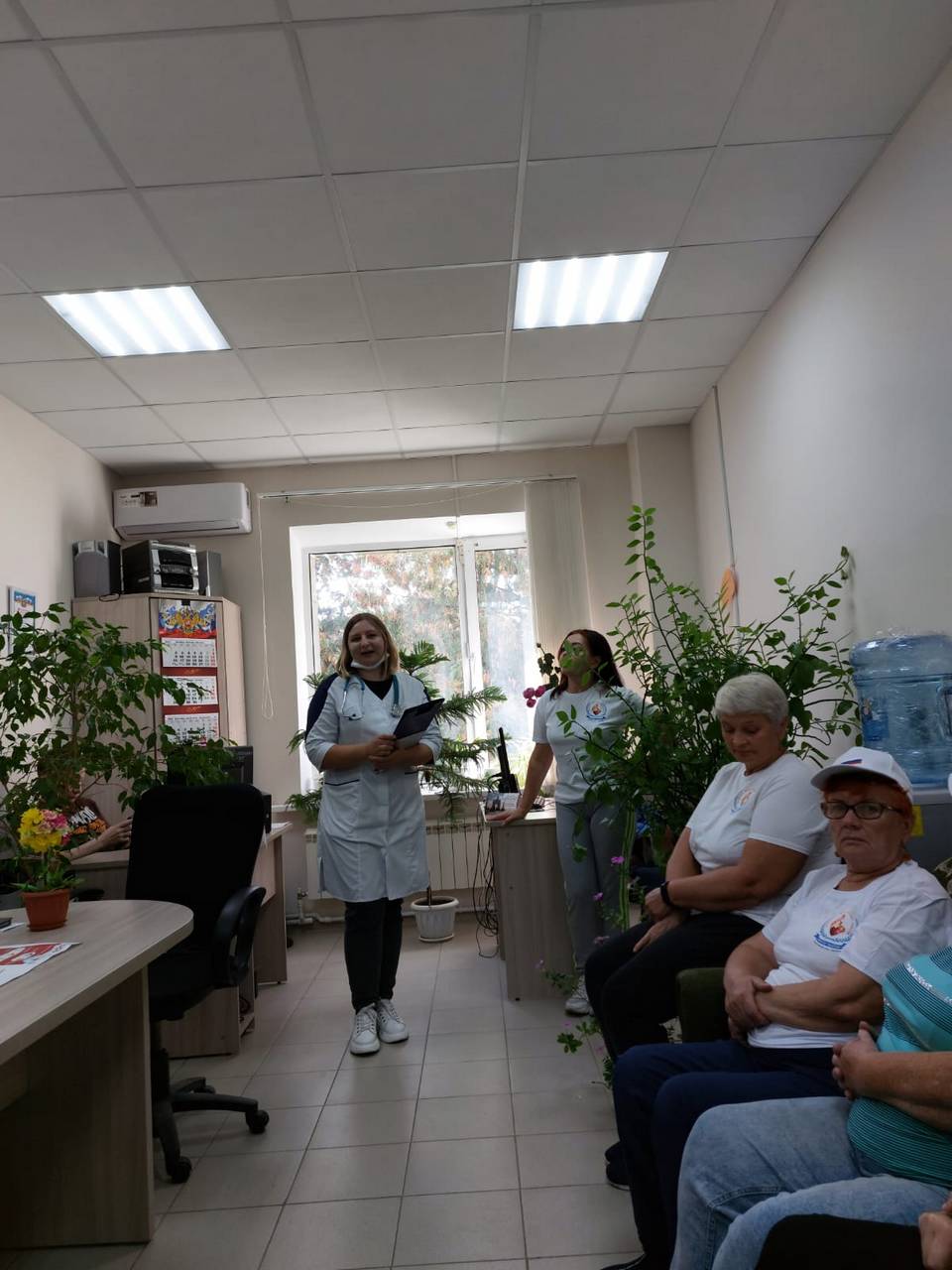 Остеопороз — это хроническое заболевание костей скелета, которое связано с нарушением обмена веществ, проявляется прогрессирующим снижением плотности и нарушением структуры костной ткани и приводит к переломами при минимальной травме. Поговорили о симптомах и методах лечения, что такое остеопороз, причины возникновения, список рекомендуемых анализов и исследований. Беседа получилась интересной, познавательной и конструктивной. Так-же все желающие смогли узнать своё давление, проверить пульс и сатурацию.