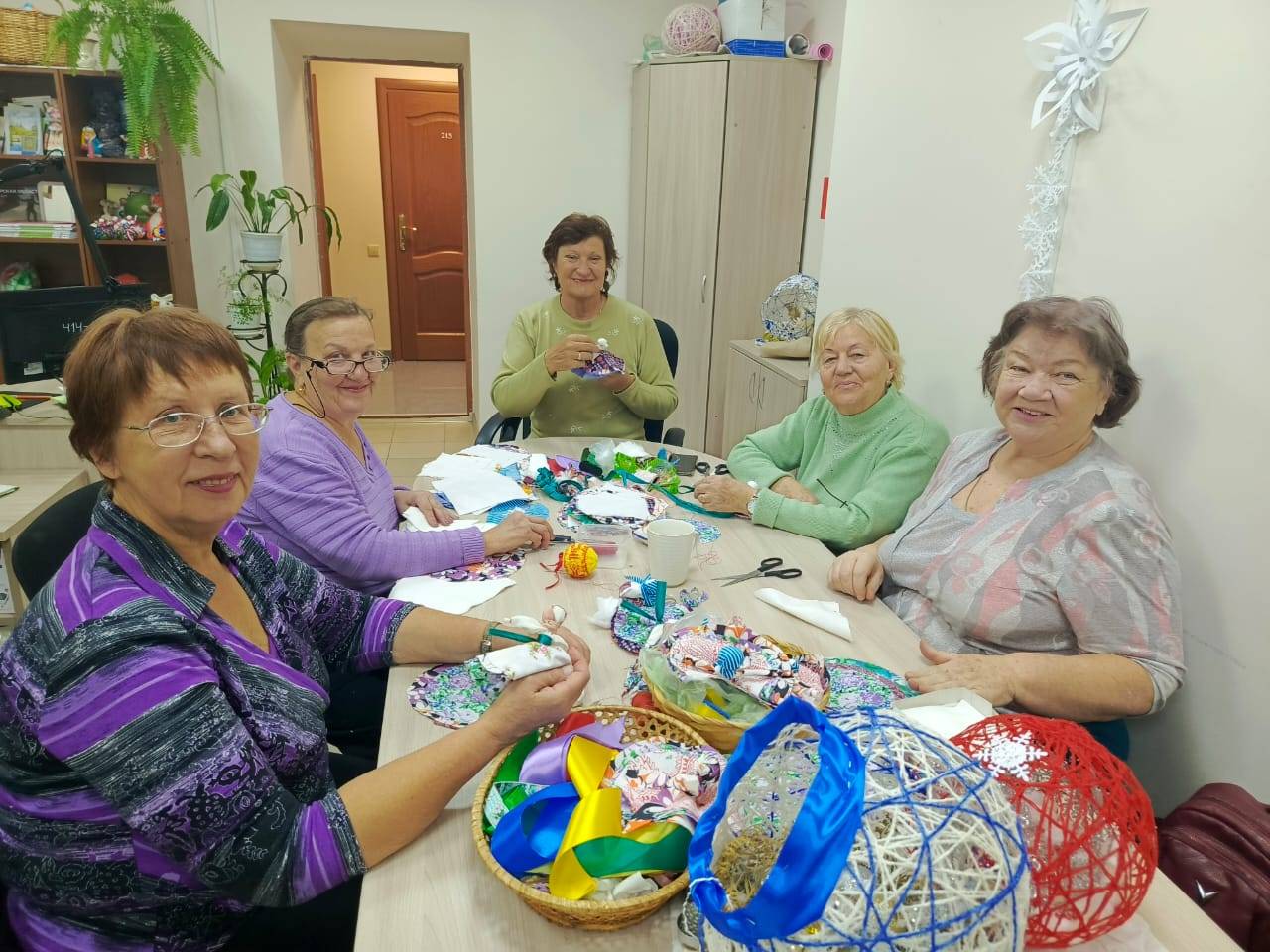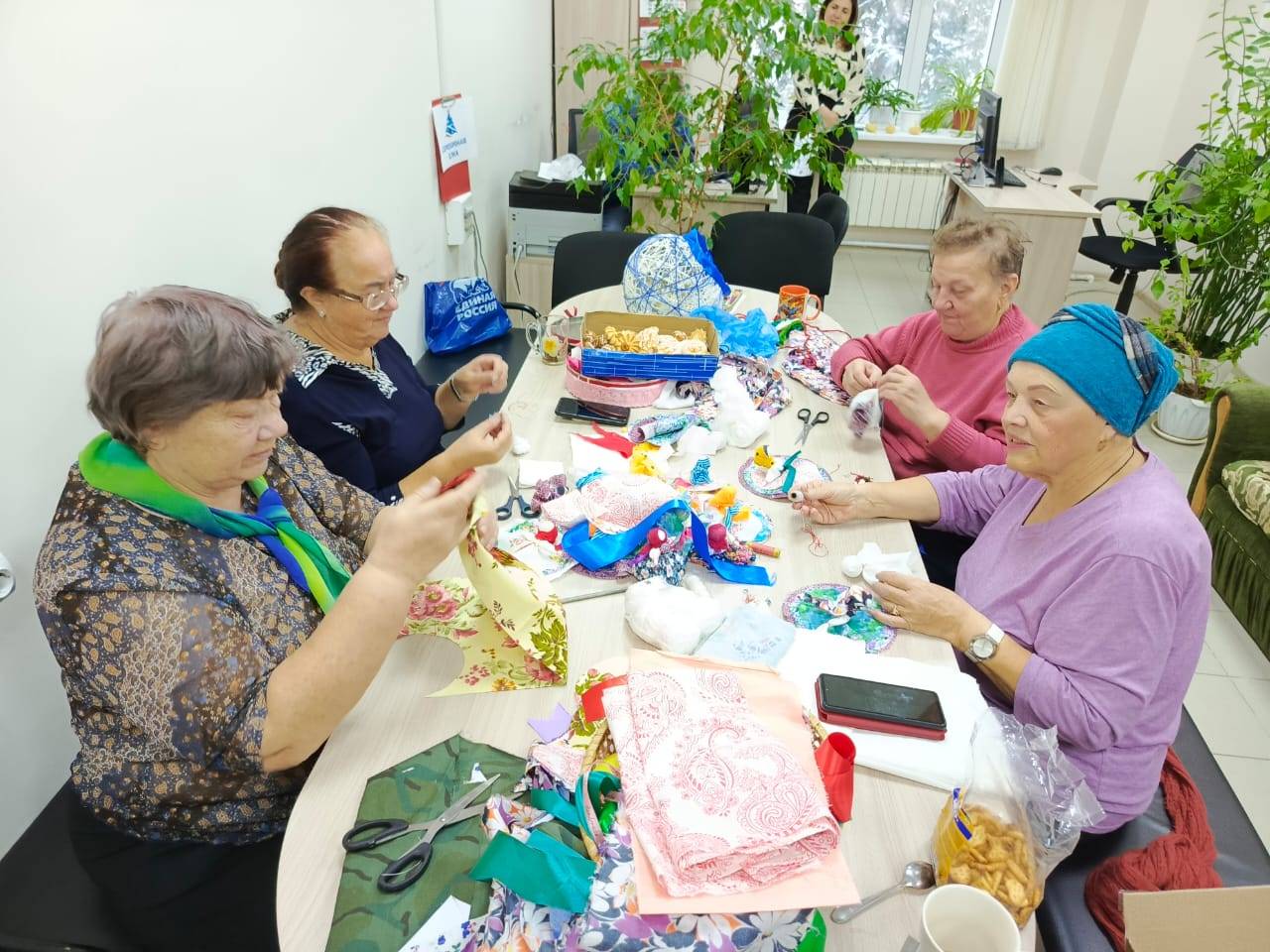 Участники отделения Активное долголетие своими руками делают куклы-обереги, вяжут носки, плетут маскировочные сети, — все, что так необходимо нашим ребятам, участвующим в СВО.