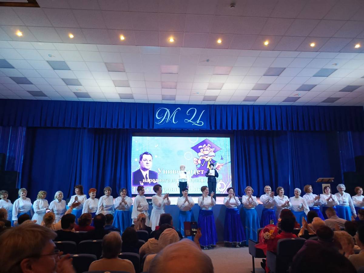 2 апреля участники отделения «Активное долголетие» приняли участие в торжественном мероприятии, посвященном закрытию 15 учебного года Университета народного просвещения им. Т.П. Николаева для пожилых людей города Курчатова. Почётные грамоты и благодарственные письма получили деканы и преподаватели Университета народного просвещения. В их числе директор ОБУСО «КЦСОН Курчатовского района и города Курчатова» Акулова Елена Николаевна и программист Центра Богословский Сергей Юрьевич. На базе нашего учреждения уже не первый год проходят занятия факультета информатики и компьютерной грамотности. Концерт получился зрелищным и ярким. Мы получили массу положительных эмоций и заряд прекрасного настроения. Какие у нас талантливые люди преклонного возраста!