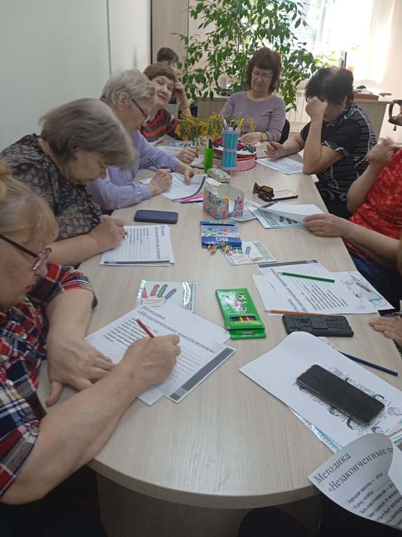 Групповые занятия с психологом наши участники отделения Активное долголетие, созданного на базе ОБУСО «КЦСОН Курчатовского района и города Курчатова», всегда ждут и с удовольствием посещают. «Познай себя» - так называлась тема очередного занятия. В ходе мероприятия люди преклонного возраста отвечали на вопросы тестов «Это Я», «Знакомьтесь — психология», также познакомились с методикой «Незаконченное предложение» и с арт-терапией «Рисуем свой портрет».