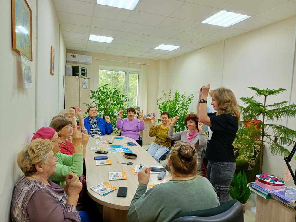 Понедельник в отделении Активное долголетие, начался с утренней дыхательной зарядки и пробежки по нашему Тёплому берегу. В любую погоду мы не пропускаем наши занятия, знаем как полезны прогулки на свежем воздухе и с удовольствием занимаемся. Но не менее полезны занятия с психологом. В нашем Центре регулярно проходят групповые занятия с психологом. Занятия проходят в непринужденной, весёлой обстановке. Сегодня мы играли в «Угадай мелодию», вспомнили по фотографиям певцов советской эстрады, разгадывали ребусы, загадки, играли в «Слова».