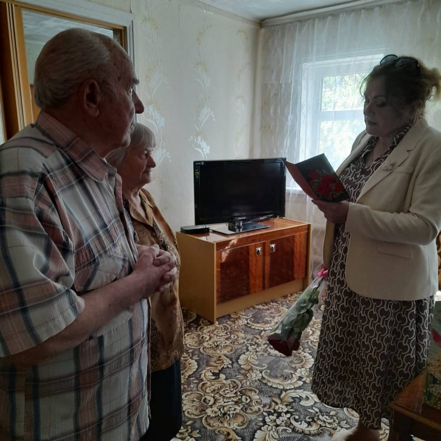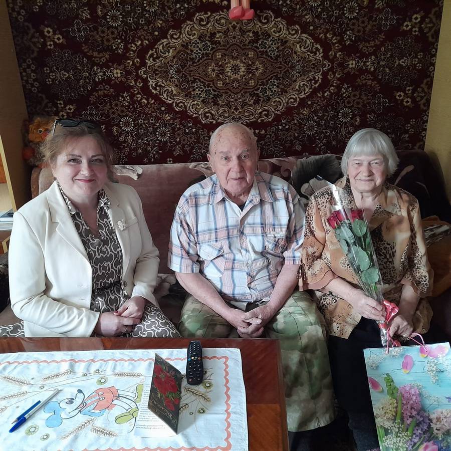 В рамках акции «Секрет семейного счастья», сотрудники ОБУСО «КЦСОН Курчатовского района и города Курчатова», поздравили с праздником семью Лазаревых, Владимира Дмитриевича и Валентину Егоровну. Чета Лазаревых вместе уже 65 лет! Валентина Егоровна родом из села Гуторово Курского района, а муж из села Марица Льговского района, познакомились на танцах. Целый год Владимир Дмитриевич ждал чтобы сделать предложение Валентине, ей на момент знакомства исполнилось только 17 лет, Владимиру 18 лет. Совсем молодые не побоялись трудностей, расписались, и вместе уже 65 лет. Секрет семейного счастья, по словам супругов, заключается в умении слушать друг друга, уступать и конечно в доверии и любви.