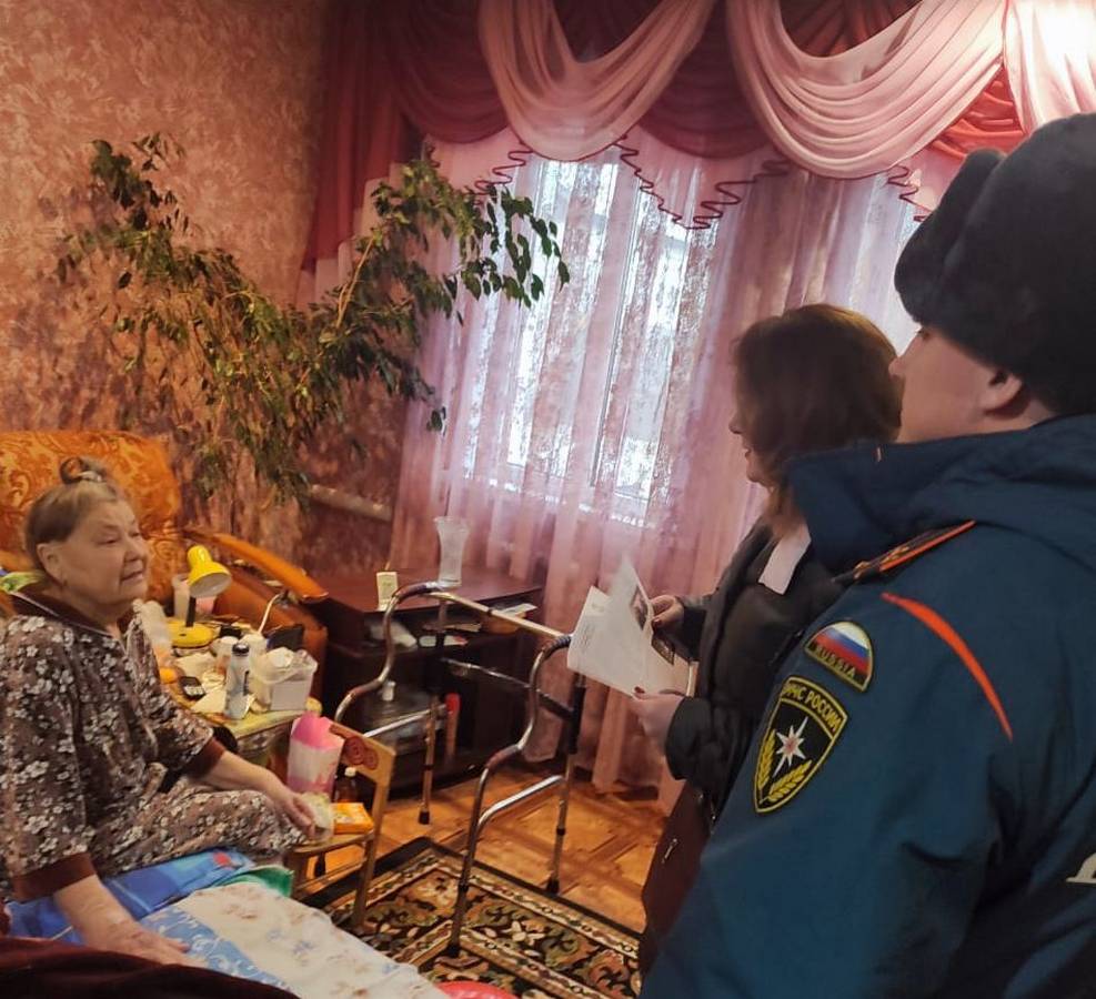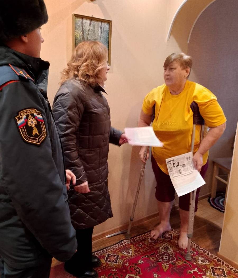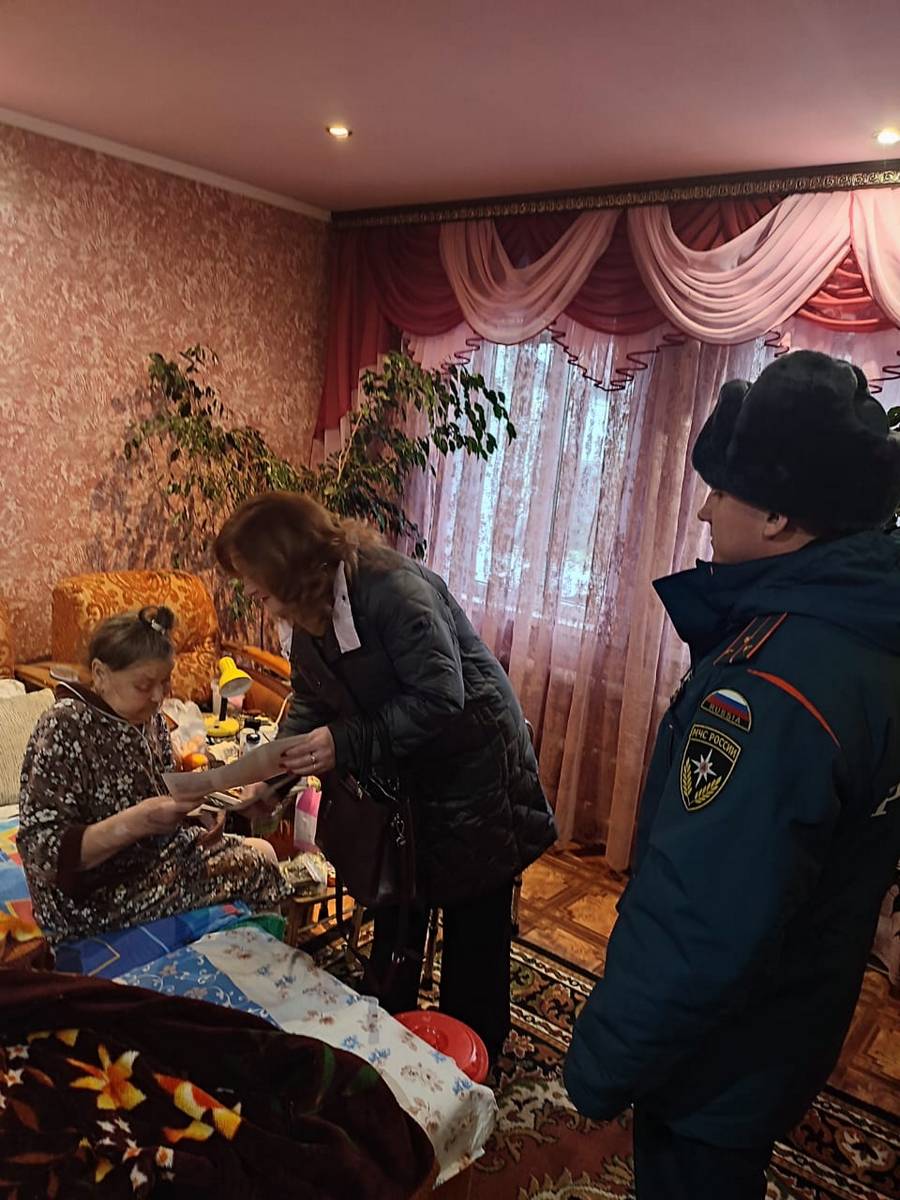 Директор ОБУСО «КЦСОН Курчатовского района и города Курчатова» Акулова Елена Николаевна, совместно с инспектором Отдела надзорной деятельности и профилактической работы по г. Курчатову и Курчатовскому и Октябрьскому районам» Щербаковым Владимиром Игоревичем, а так-же сотрудниками Комплексного центра, был организован очередной профилактический рейд по обучению мерам пожарной безопасности одиноко проживающих инвалидов, состоящих на обслуживании. Пожилым людям напомнили, правила пожарной безопасности, как обращаться с огнём и электронагревательными приборами. Вручили информационные буклеты.