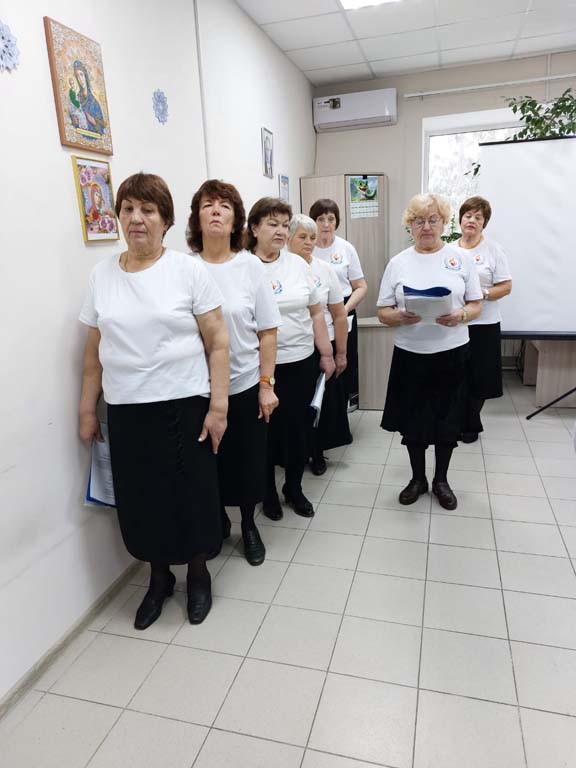 В ходе программы звучали стихи и песни современных авторов о волонтёрах, военных медиках, о матерях ждущих своих сыновей. Все участники программы — серебряные волонтёры, женщины, что плетут маскировочные сети, изготавливают марлевые салфетки, окопные свечи.