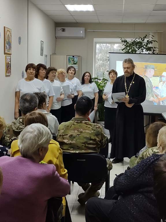 Участниками отделения «Активное долголетие» созданного на базе ОБУСО «КЦСОН Курчатовского района и города Курчатова», под руководством заведующего отделением Мосоловой Л.Б., была подготовлена литературно-музыкальная композиция «Время выбрало нас», посвященная Дню защитника отечества и началу специальной военной операции на Украине. На мероприятие были приглашены военнослужащие, иерей Александр Багаев, сотрудники Комплексного центра и получатели услуг отделения «Активное долголетие».