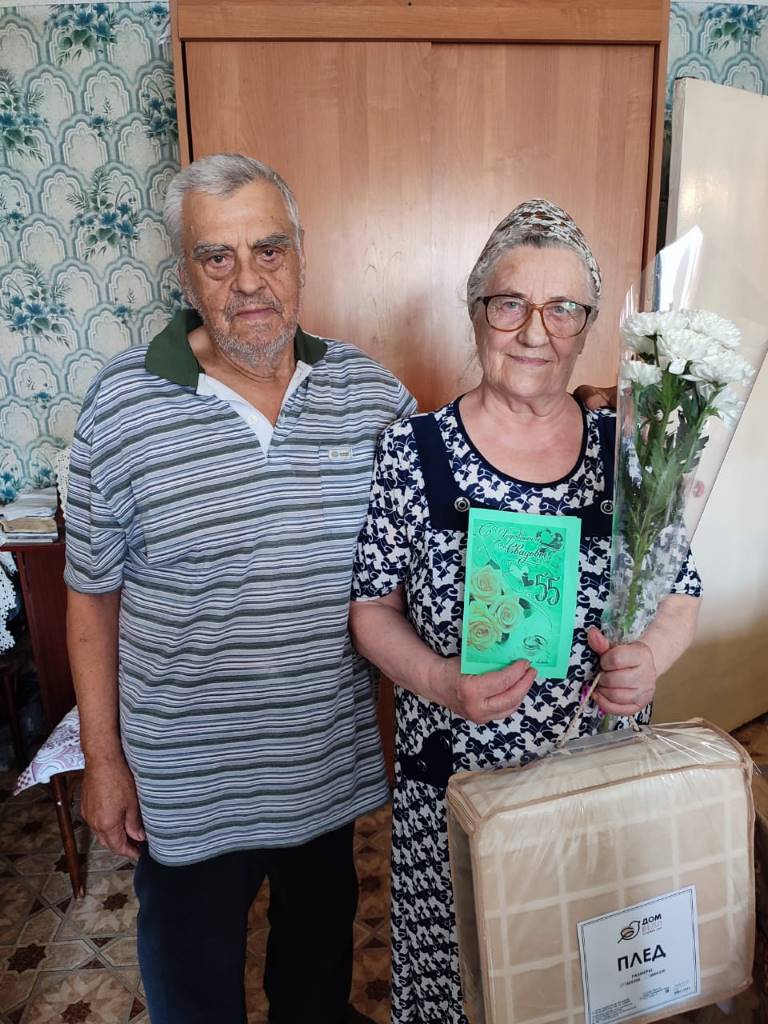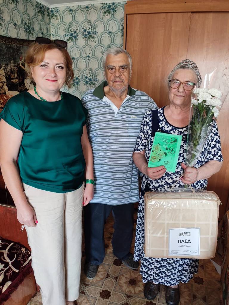 В День семьи любви и верности, директор ОБУСО «КЦСОН Курчатовского района и города Курчатова» поздравила с годовщиной свадьбы получателей социальных услуг жителей п. им. Карла Либкнехта супругов Купреевых Николая Николаевича и Надежду Филипповну, в этом году пара отмечает 55 лет совместной жизни.