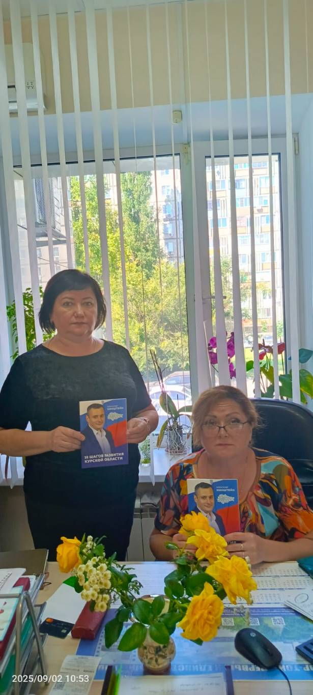 Специалисты ОБУСО «КЦСОН Курчатовского района и получатели услуг отделения «Активное долголетие» ознакомились с предвыборной программой, врио губернатора Курской области Александра Евсеевича Хинштейна под названием «10 шагов развития Курской области». Программа основана на пожеланиях курян, с учётом национальных приоритетов и реальных потребностей региона.