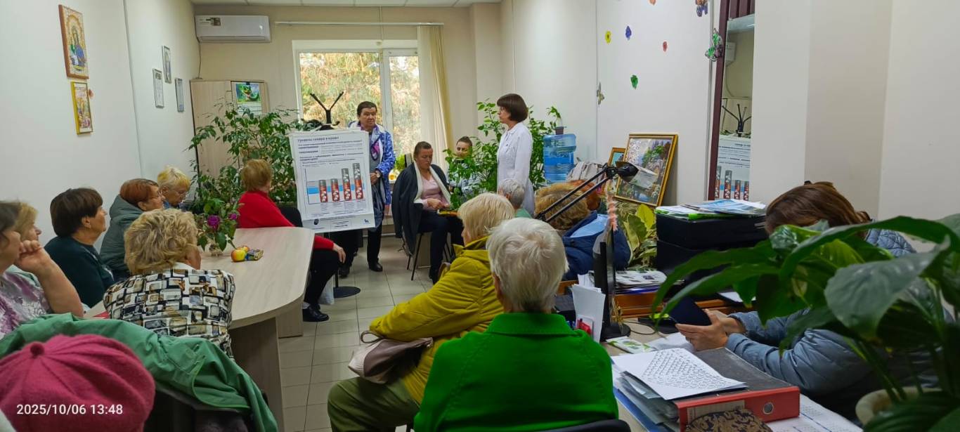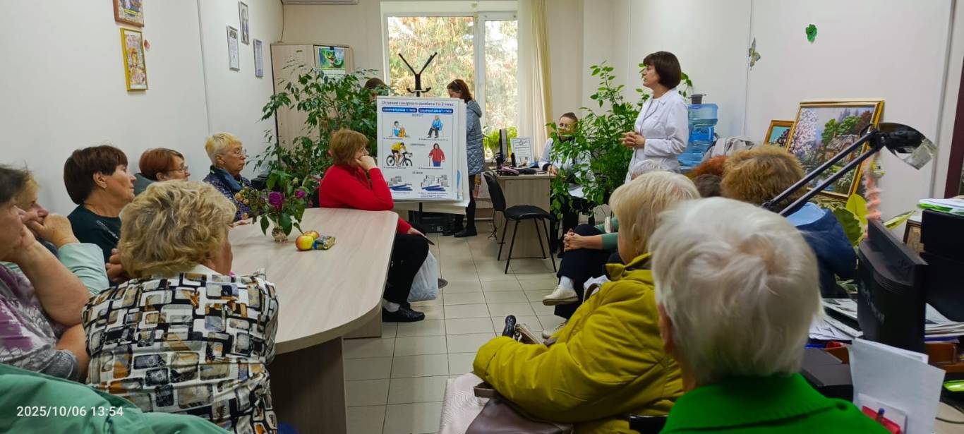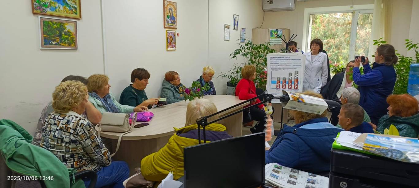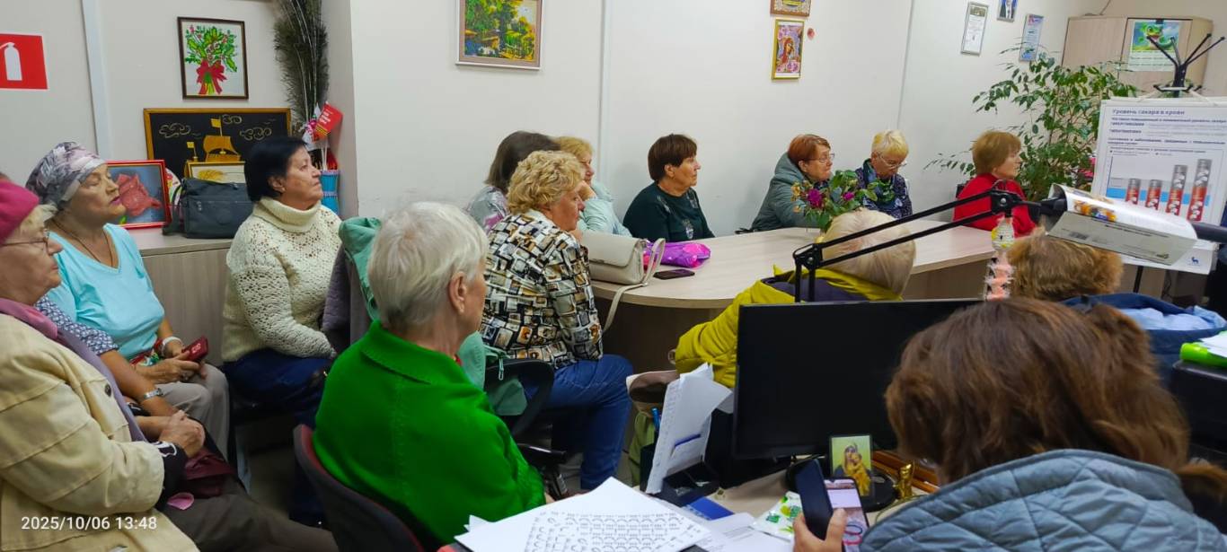 В рамках выездной диспансеризации участники «Активного долголетия» и сотрудники Комплексного центра узнали свое артериальное давление, сатурацию, сдали кровь для проверки уровня холестерина, глюкозы и гемоглобина, сделали ЭКГ. Врач – эндокринолог провела лекцию. Представители старшего поколения с интересом выслушали лекцию врача