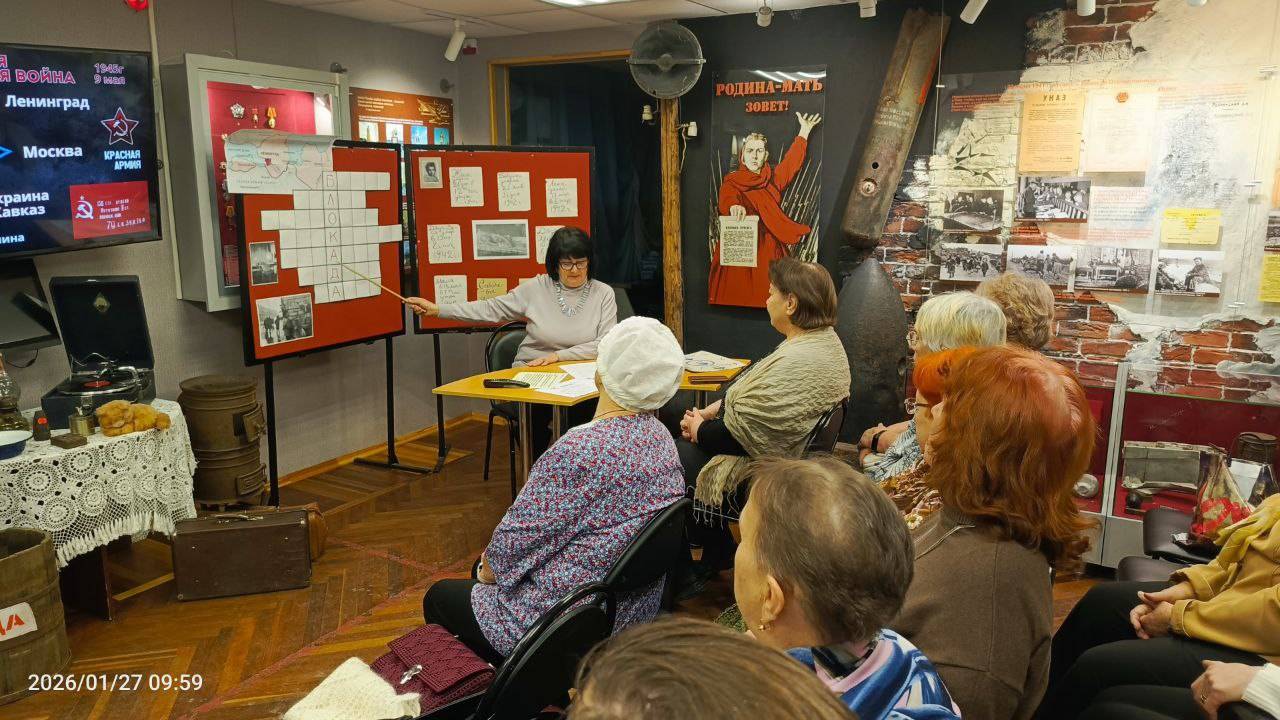 27 января наша страна отмечает памятную дату — День полного освобождения Ленинграда от фашистской блокады. Этой дате была посвящена интерактивная программа, рассказывающая о подвиге блокадного Ленинграда, которую провела для участников отделения Активного долголетия ст. научный сотрудник Нарбекова Татьяна Петровна.