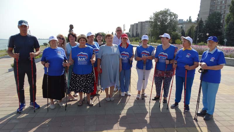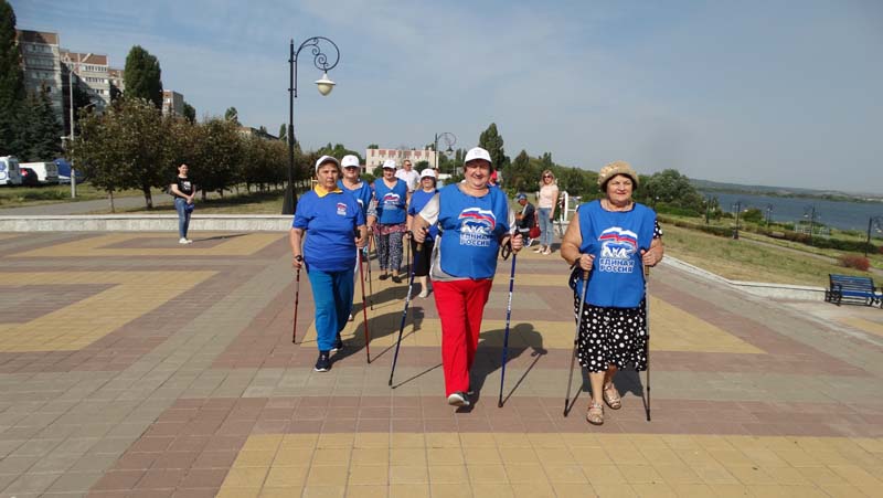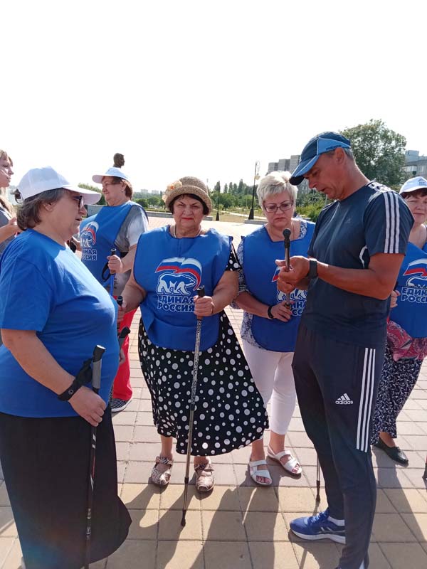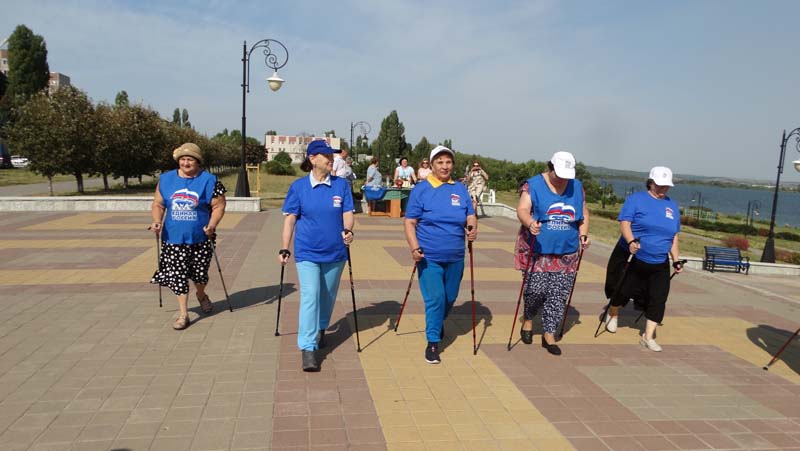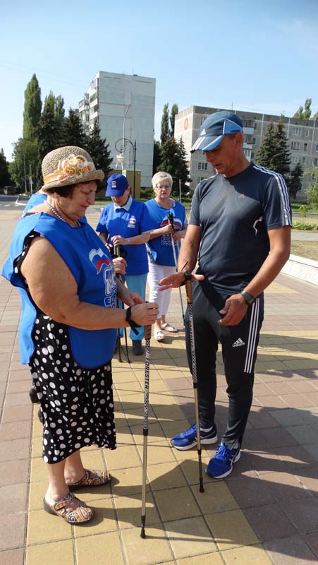 Пенсионеры, а также работники центра, увлекающиеся скандинавской ходьбой, сделали несколько кругов по набережной по всем правилам скандиновской ходьбы. Мастер-класс по использованию скандинавских палок провел профессионал, инструктор по спорту Александр Лукьянчиков, продемонстрировав правильную технику ходьбы, так же указал на ошибки при выборе длины палок.